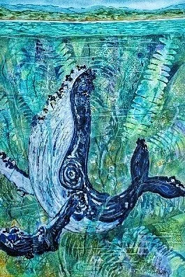 She works in acrylic paint with her style particularly highlighting the textural and decorative detail found in nature.